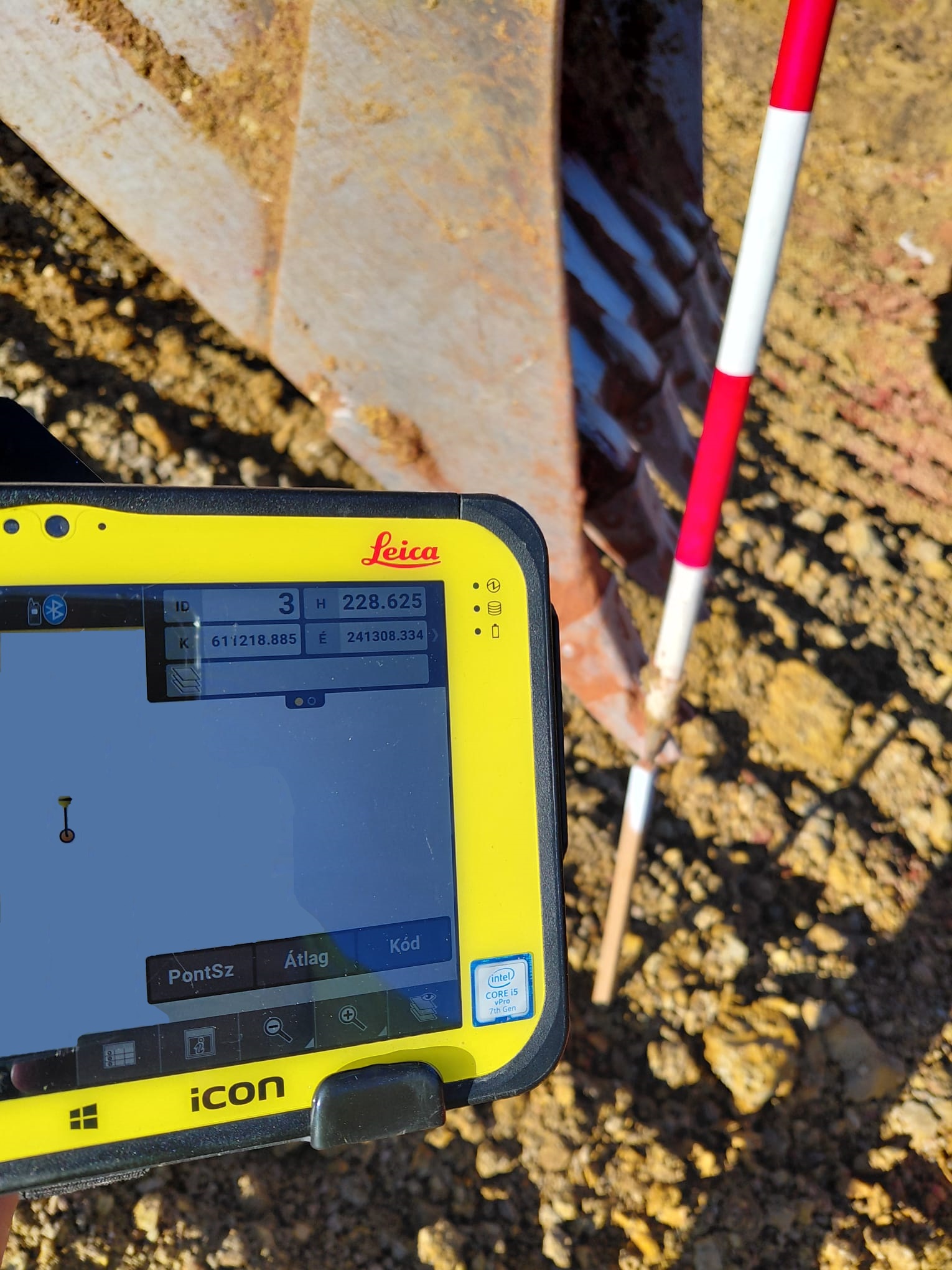 Összefoglalva, a Leica ConX és a Leica MC1 3D kotróvezérlés együttes alkalmazásával az automatikus pontrögzítés nem csupán kényelmi funkció, hanem valódi, azonnal hasznosítható végterméket eredményez. A munkavégzés során rögzített adatokból előállnak az elkészült terepfelületek pontjai, valamint a munkaárok geometriai pontjai, amelyek közvetlenül illeszkednek a gépvezérléshez használt digitális terepmodellhez. Így a kivitelezés tényleges állapota torzításmentesen, a tervezési környezettel összhangban dokumentálható.