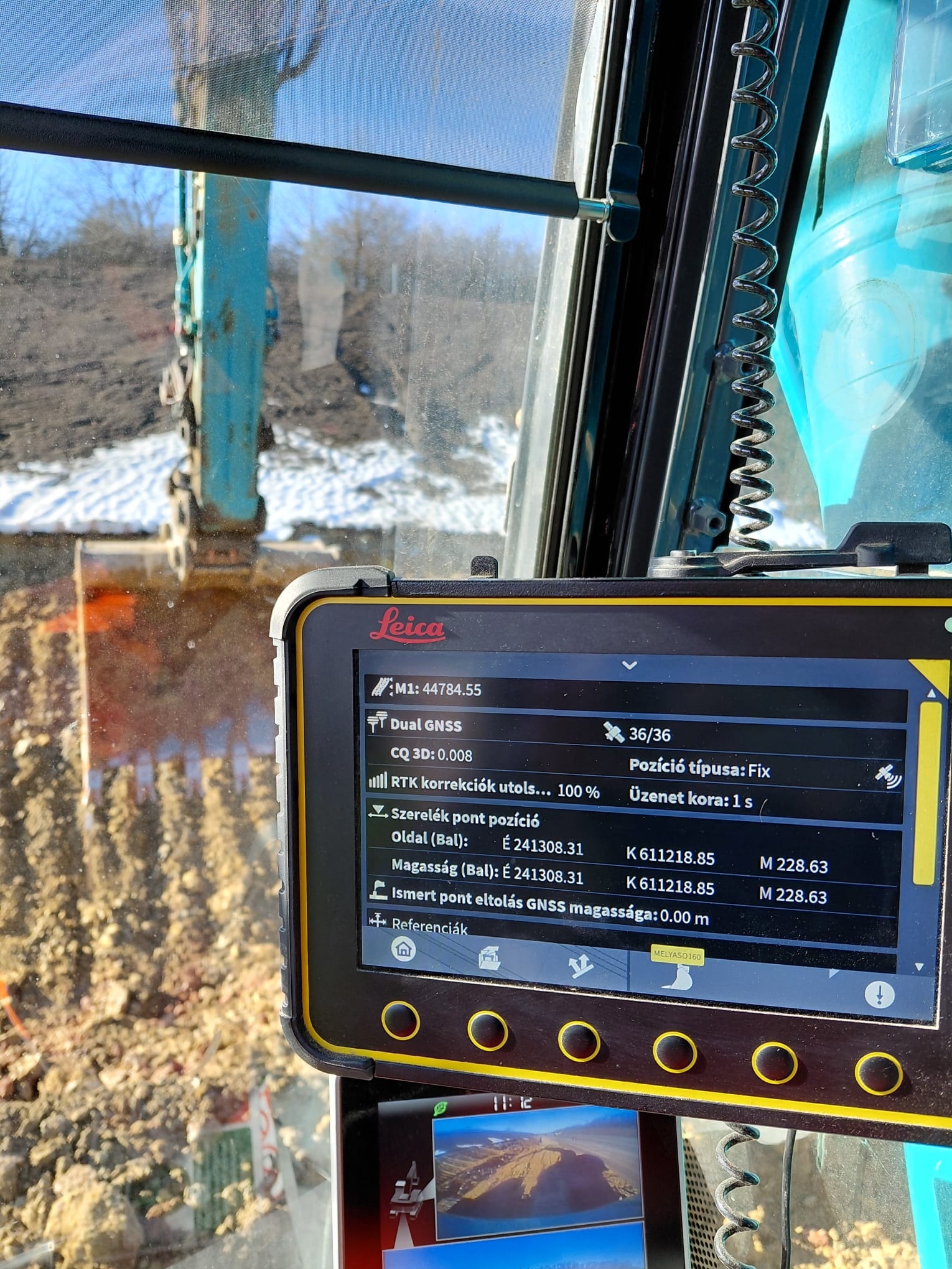 A nagypontosságú kalibrációnak köszönhetően megkapjuk a munkagépre szerelékének pontos térbeli koordinátáit (EOV rendszerben), valamit a választott szerelék ponttal akár pont kitűzések és felmérések is végezhetők.