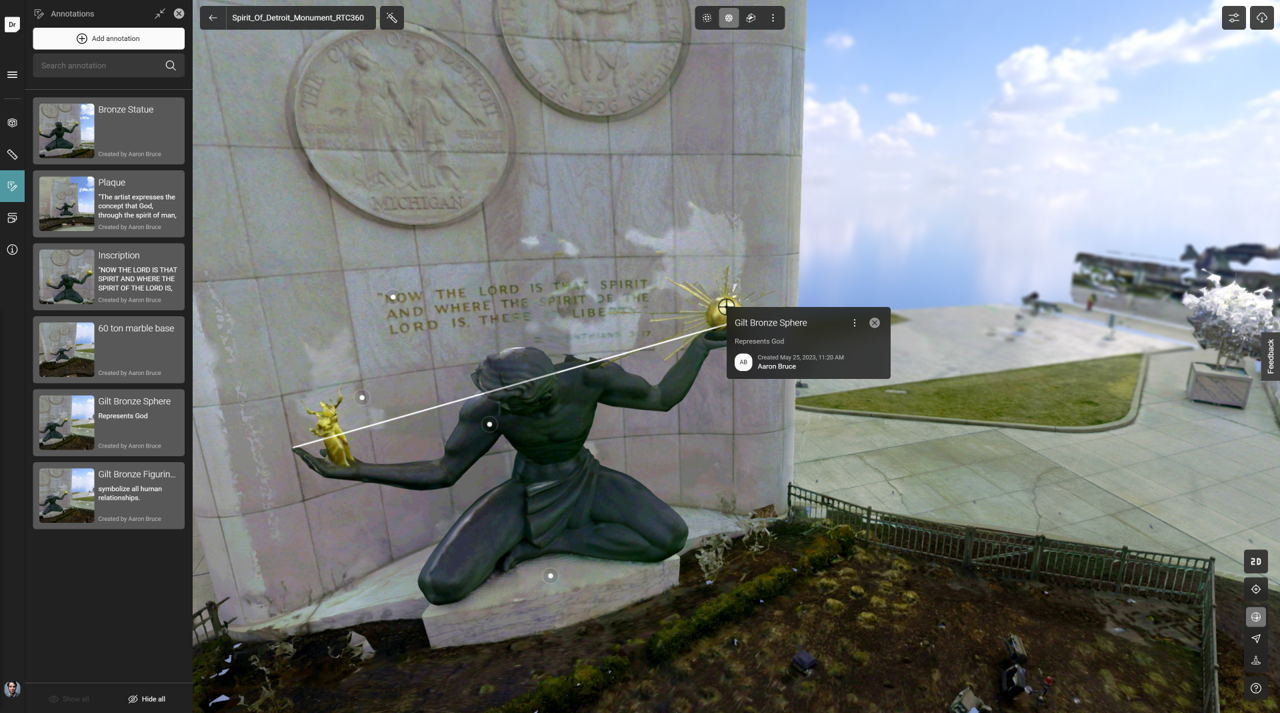 Azonban nem csak feltölteni és tárolni van lehetőségünk az adatokat, hanem meg is oszthatjuk ezeket másokkal, akár egyedi hozzáférési jogosultság beállításával. Sok esetben maga a pontfelhő is lehet egy végtermék, például egy műemlékvédelmi épület állapotrögzítése során. Ezen kívül a tervezési folyamatok során is nagy hasznát vehetjük, ugyanis a pontfelhőből való tervezéskor gyakran csak egy-egy metszetből történik maga a rajzolás, vagy modellezés. Abban az esetben, ha az adott metszetnézetből nem tudunk egyértelműen eldönteni valamit, akkor az RCS online felületén egyszerűen odanavigálunk, és 3D-ben vagy akár panorámakép nézetből is szemrevételezni tudjuk a helyszínt. Így nincs szükség a CAD programon belül a beállított metszetünket ki-be kapcsolgatni.