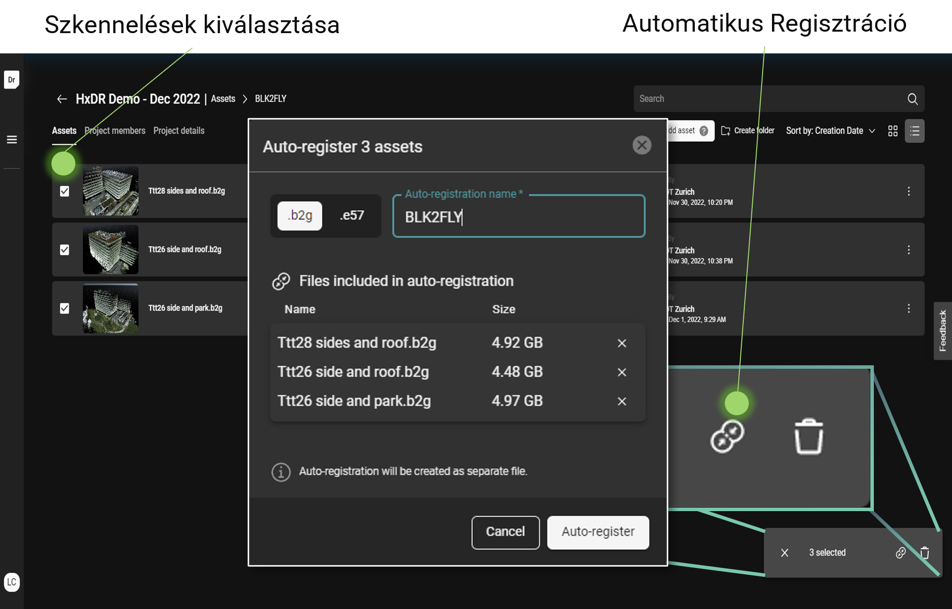 Amennyiben nem rendelkezünk megfelelő internet eléréssel a terepen, vagy éppen nincs szükségünk az adatok azonnali szinkronizálására a felhőbe, ezt természetesen utólag is megtehetjük. Emellett nem csak nyers adatokat, hanem kész, regisztrált és tisztított pontfelhő állományokat is van lehetőségünk feltölteni. Hogy miért tennénk ezt, az alább kiderül.